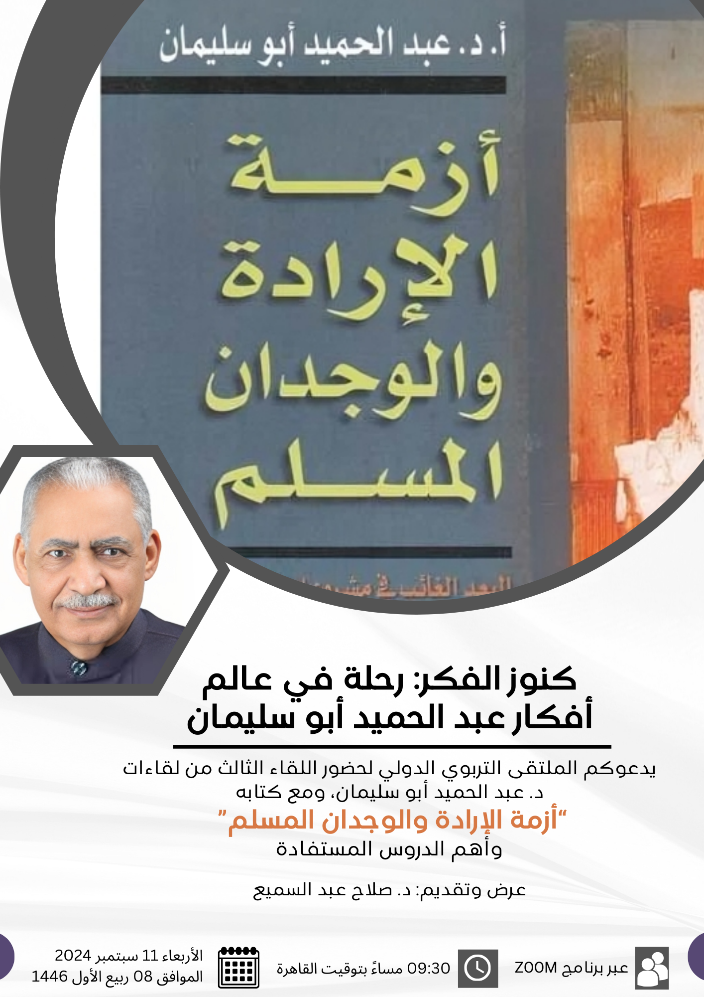 يدعوكم الملتقى التربوي الدولي لحضور اللقاء الثالث من لقاءات د. عبد الحميد أبو سليمان، ومع كتابه