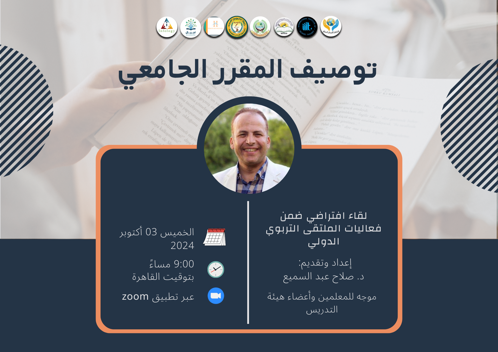 هنا نموذج لتوصيف مقرر جامعي فارغ، باللغة العربية والإنجليزية، مع شرح البنود المتضمنة، بصيغة word و pdf، يمكنك التحميل من الأيقونات في الأسفل.